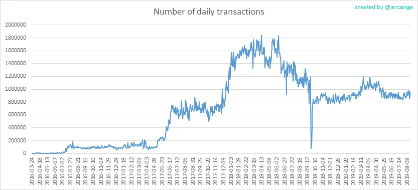 This graph shows the number of daily transactions. This give you an idea of the whole activity on the blockchain.