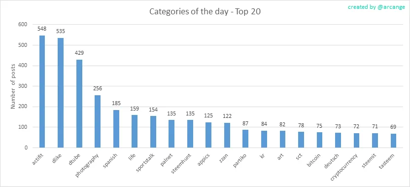 This graph shows the tag has been the most used for publishing posts for the whole blockchain lifetime.