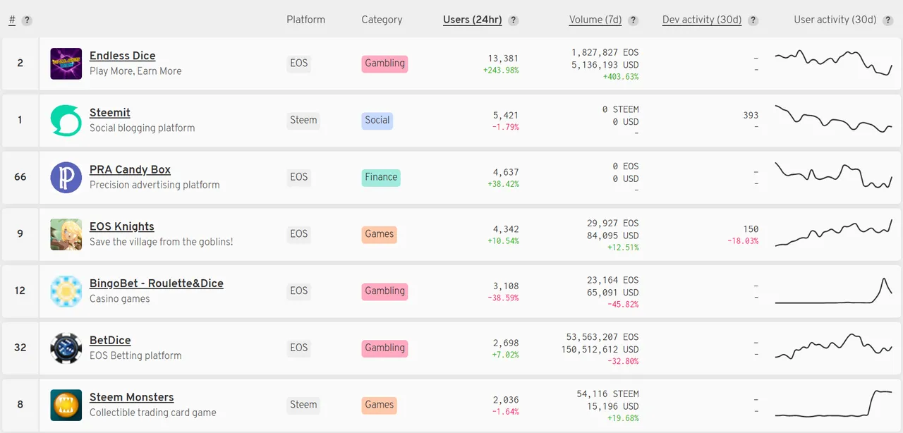 Ok, well, https://www.stateofthedapps.com/rankings?sort=dau&order=desc is a thing. It shows you the activity on a dapp. @crimsonclad said that we should be taking action. I would encourage you to a very simple thing. Post once daily. Play one game of Steem Monsters.
