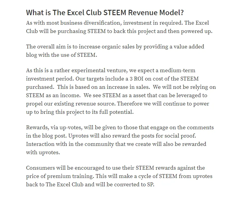 3. Find a way to integrate my existing online business with STEEM.  I really want to keep doing what I was doing before STEEM.  Spending so much time doing STEEM stuff left a major hole in my finances.  But I really want to continue doing STEEM stuff too and the only way is to combine them.  The other day I published my Excel Club STEEM business plan.   I found a way to integrate them with the use of Steempress.  One of the difficulties was revenue model.  My thoughts for a long time were focused in the wrong direction, how could I make STEEM with my existing business.  But then I realized I don’t need to make STEEM income to run a profitable business on STEEM.  I just need to utilize it to add value.