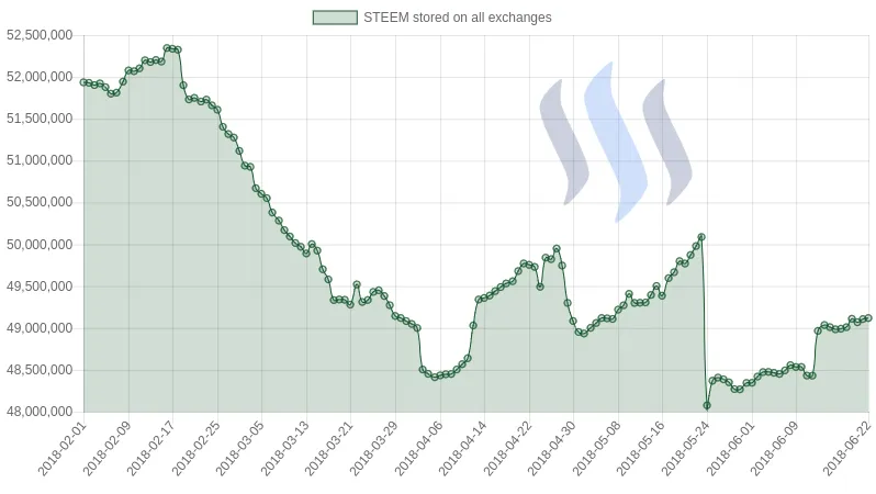 Total amount of STEEM stored on all exchanges: 49,118,530 STEEM