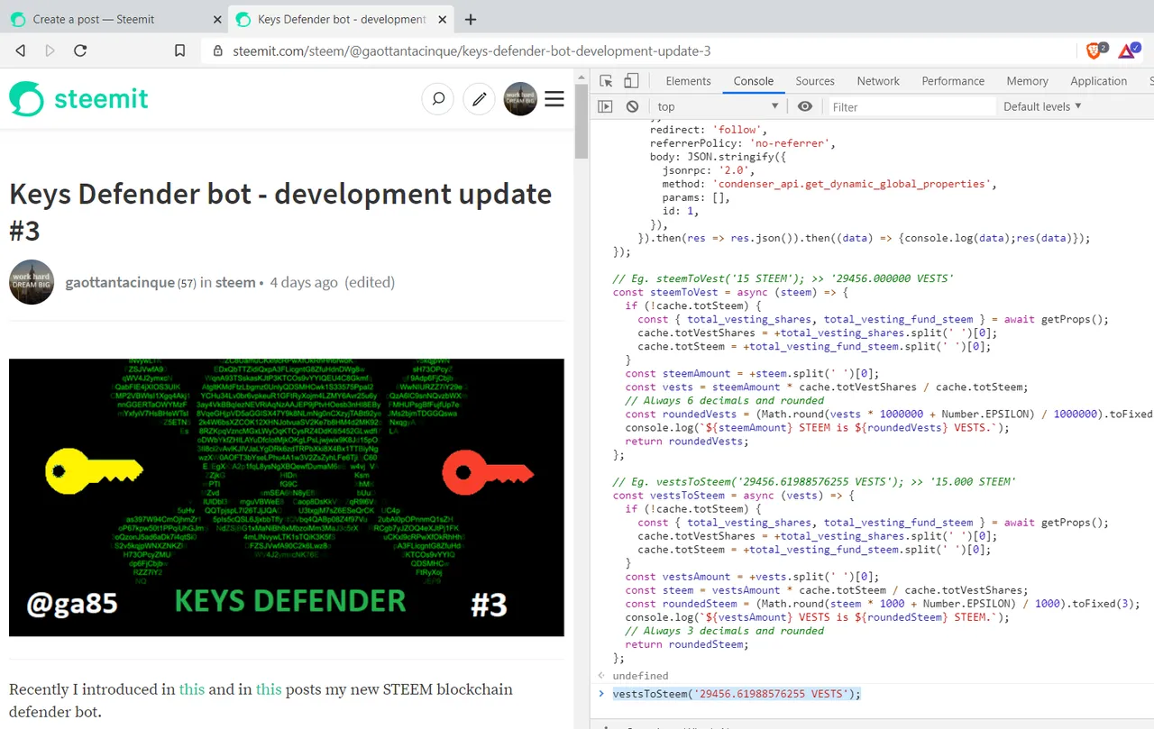 Press enter and there you go! You can now execute the 2 commands to convert between STEEM and VESTS.