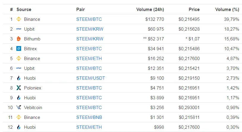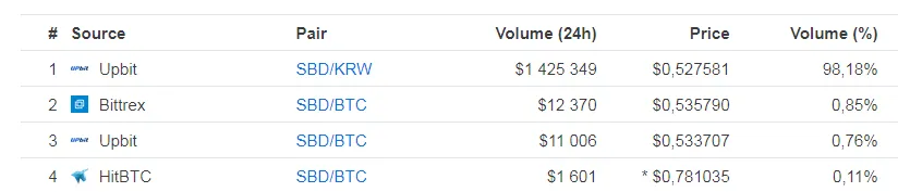Pretty much just Upbit runs this. And skip price of HitBTC as this "super exchange" has wallet down for half a year or maybe a year. They also owe me money that i cant withdrawal and reply to tickets "trader please wait".