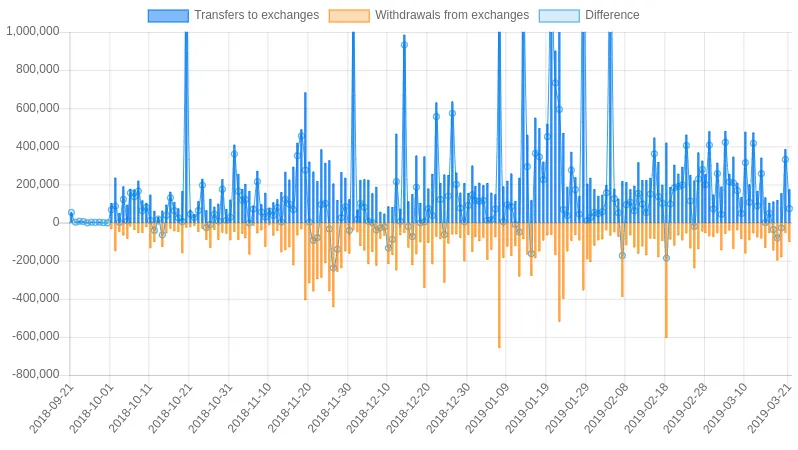 | Date | Transfers to exchanges | Withdrawals from exchanges | Difference |