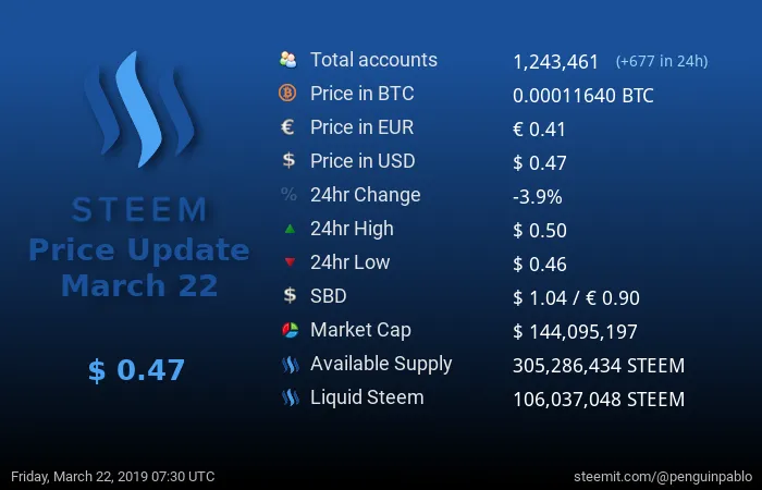 Welcome to my Steem Stats Report for Friday, March 22, 2019. All data comes directly from the Steem blockchain and is based on UTC time.