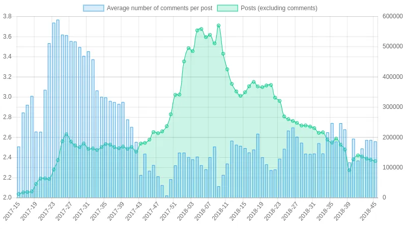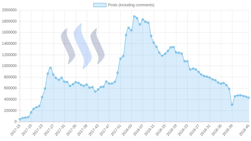 | 2018-43 | 1,979,433 STEEM | 871,888 STEEM | 1,107,545 STEEM |