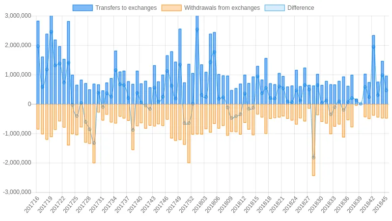| Date | Transfers to exchanges | Withdrawals from exchanges | Difference |