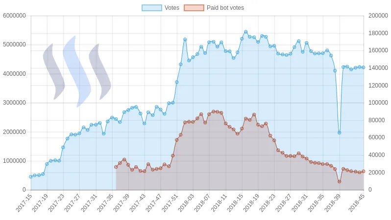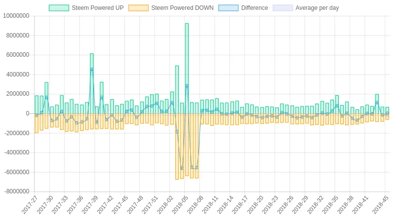 | 2018-44 | 683,530 STEEM | 843,628 STEEM | -160,098 STEEM |
