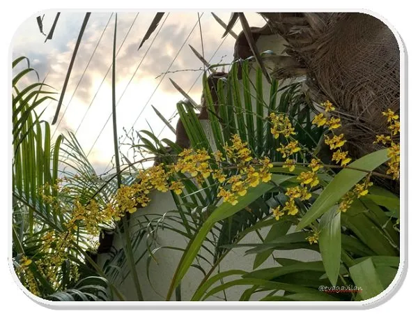 Hace un tiempo me regalaron una planta de Orquidea miniatura. La colgué bajo una palmera y allí comenzó a crecer y crecer.