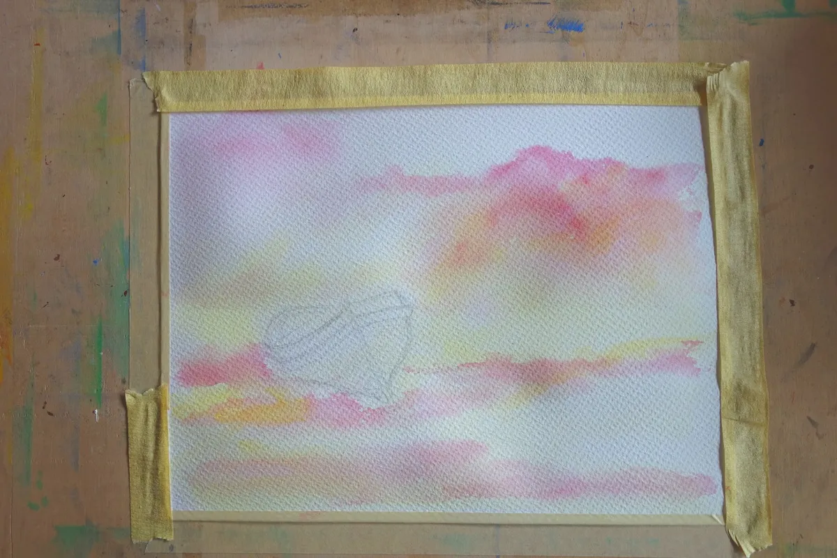 Today I decided to try something different with my watercolour paints. I saw some paintings of other artists and noticed that some of them have many different other colours except the main one and that made them look really nice, like a touch of yellow and pink. So I thought I will create my sky using these two colours as under-painting and keep them very pale, but to use the main colours and to see if my under-painting will be able to see.