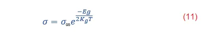 Y finalmente luego de desarrollar todo este conjunto de ecuaciones y a partir de la ecuación (11) podemos encontrar el valor real de la conductividad eléctrica de un semiconductor mediante la siguiente expresión: