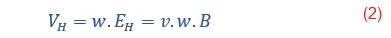 Por otro lado, si en la barra semiconductora denominamos su ancho como "w", las caras opuestas de la barra tendrán una diferencia de potencial VH: