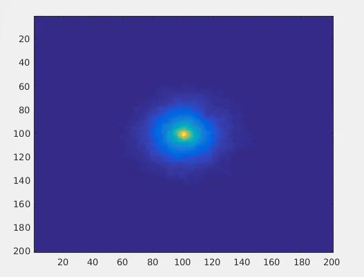 imagesc(mean(space_2d,3)) %Visualize the averaged traces of all 1000 Random Walks