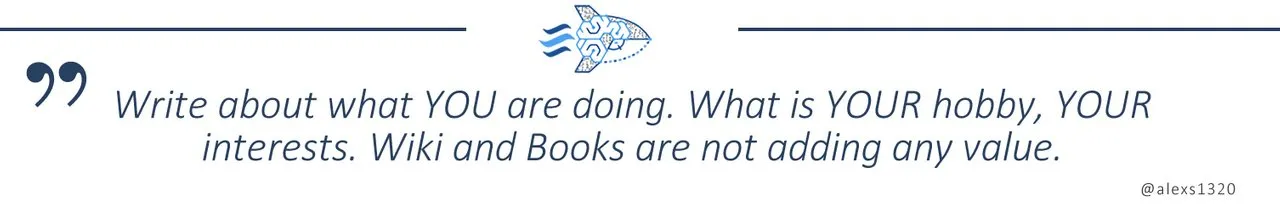 Just imagine the potential investor, checking the platform... "Wow, I could buy those coins that are given for plagiarism, so I could earn more coins to foster more low-quality content." What is the value of that? It's Zero, 0. We are representing a brand. If we can make something good and put our posts on the very first page in Google Search (and many authors can do it), we are promoting the whole platform and project. This is why I'm advocating for fostering excellence, competence and originality.