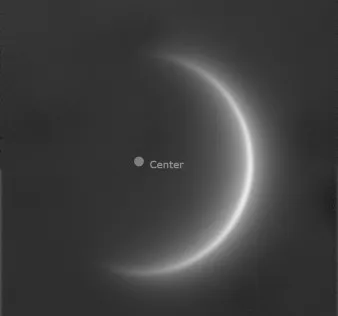 Venus showing an extreme crescent phase - 2250 exposures were obtained with a Celestron C14 and QHY183c at 1pm in the afternoon, October 20, 2018. A mask with a 4" opening was placed over the telescope to reduce sunlight entering the optical path
