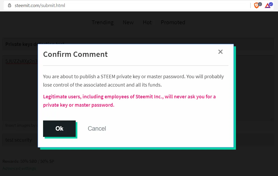That led me thinking whether this is still an issue nowadays. So I tested steemit.com copying and pasting an (old) private key in a transfer memo, in a comment and in a post.