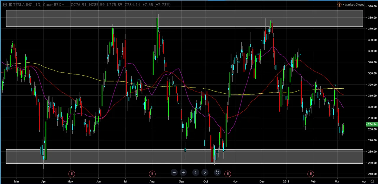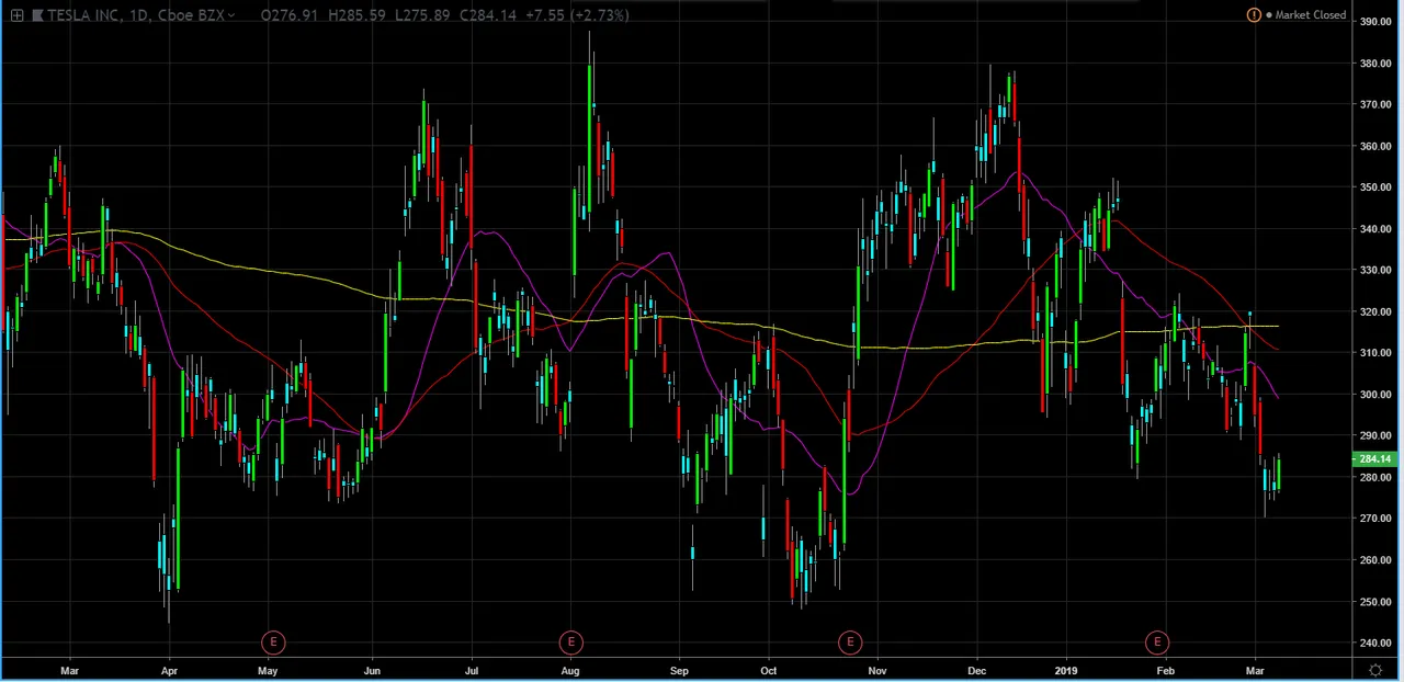 Day traders must love trading Tesla and options traders must love the volatility. Just look at this chart on the last 12 months, it looks like an EKG monitor.