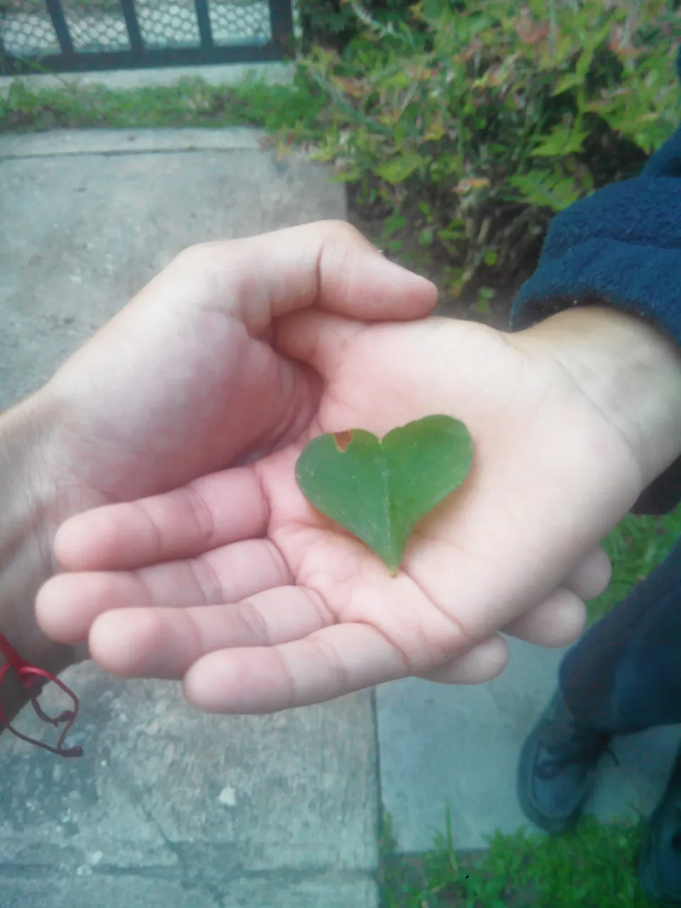 Ya a quince para las siete salí de la casa cansada sin haber empezado el día, y en ese instante fue la magia, mi pedacito de gente estaba parado en la reja de salida, me mira detrás del cristal de sus lentes y extendiendo la mano me ofrece con cuidado lo que posa encima de ella, y me dice... "Mira mama un corazón para ti, te amo…"