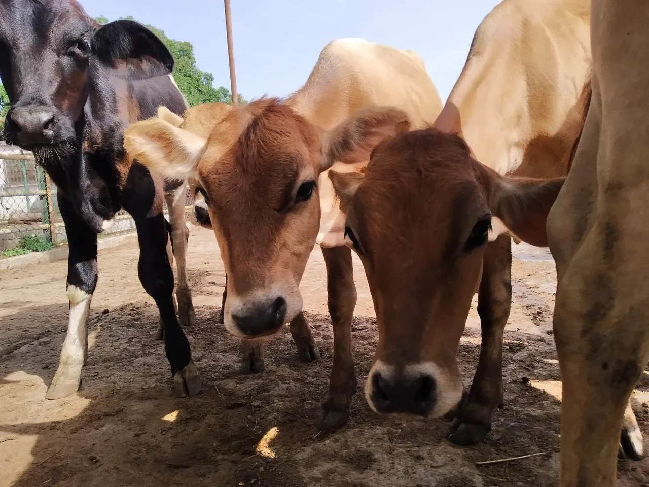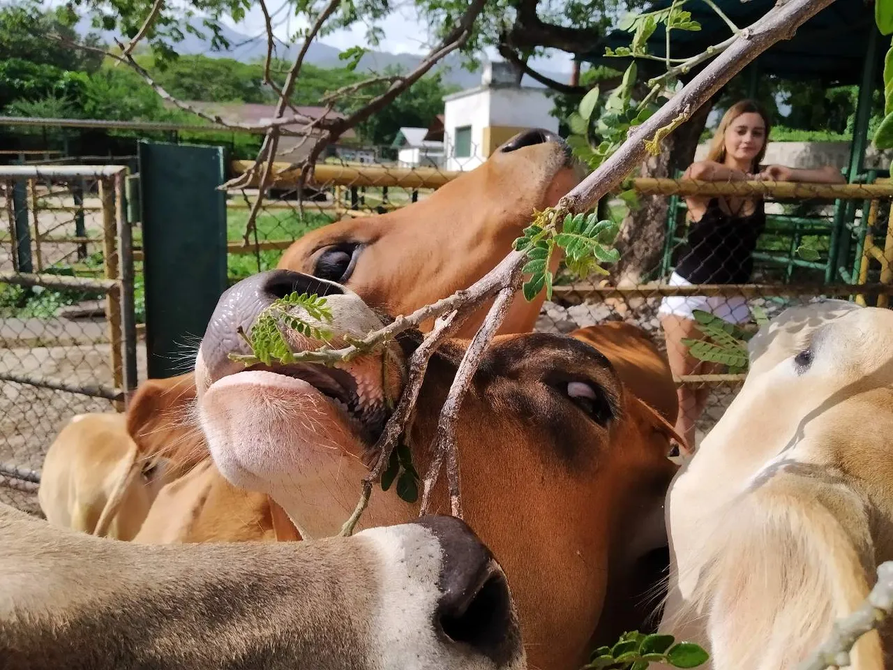 Junto a otros 7 becerritos mas estaban Persiguiendo por el corral para comer algunas hojas de saman que les había recolectado.