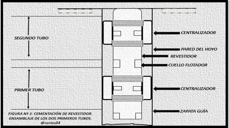 La figura Nº 3 muestra la cementación del revestidor con el ensamblaje de los dos primeros tubos.