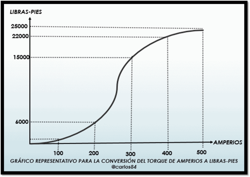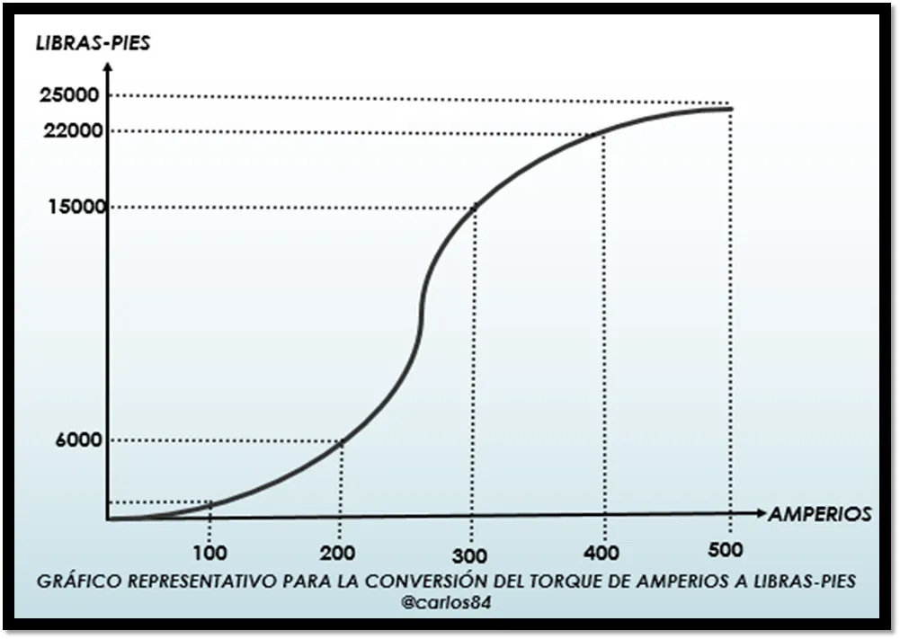 A continuación les presento un gráfico ejemplo para realizar la conversión de amperios a libras-pies: