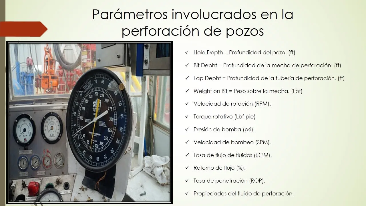 Los parámetros de perforación involucrados en la perforación de pozos son muchos, sin embargo en el conversatorio dictado traté de centrarme en realizar un resumen, y explicar los parámetros más importantes que se deben interpretar durante la perforación y construcción de un pozo, en este artículo se explicarán los siguientes parámetros: