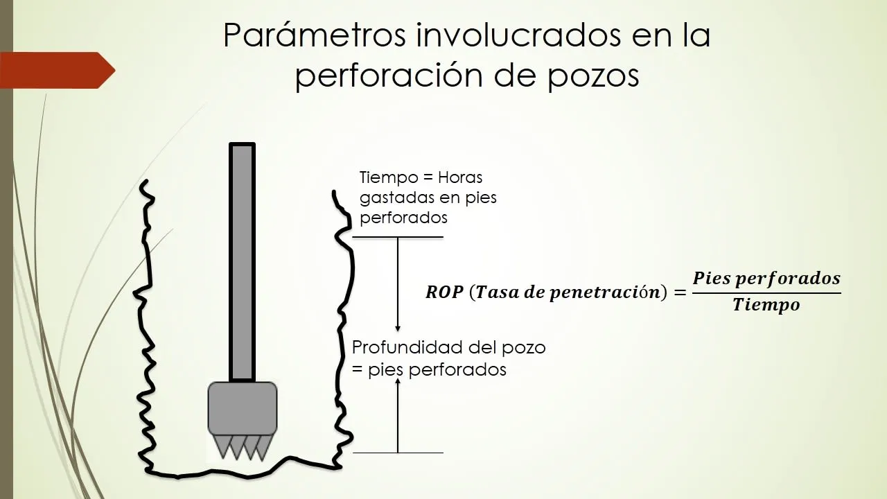 La tasa de penetración proporciona uno de los principales parámetros registrados durante la operación de perforación. Las unidades de medida de la tasa de penetración pueden estar en términos de la profundidad ganada sobre un intervalo de tiempo dado, generalmente se expresa en pies/hora.