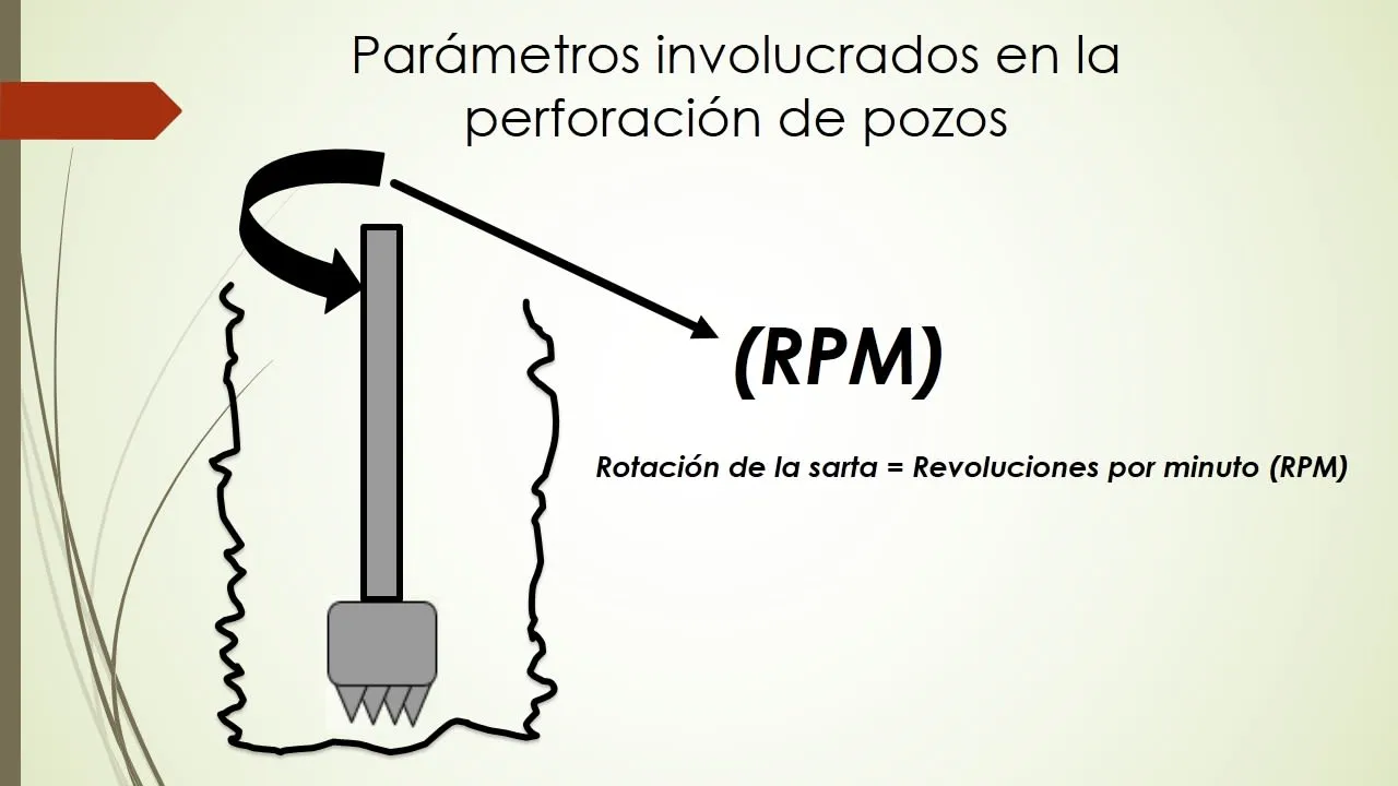 La rotación de la sarta de perforación es un parámetro de perforación que se mide en revoluciones por minuto, es decir las vueltas que da la sarta en un minuto (RPM). Por lo tanto podemos decir que una de las reglas sencillas dentro de la perforación de pozo es que si las RPM son incrementadas, entonces la ROP se incrementará. En formaciones blandas, la ROP es directamente proporcional a las RPM, dando por resultado un incremento lineal en la tasa de penetración, en cambio para formaciones duras, un incremento de las rpm proporciona una disminución de la ROP.