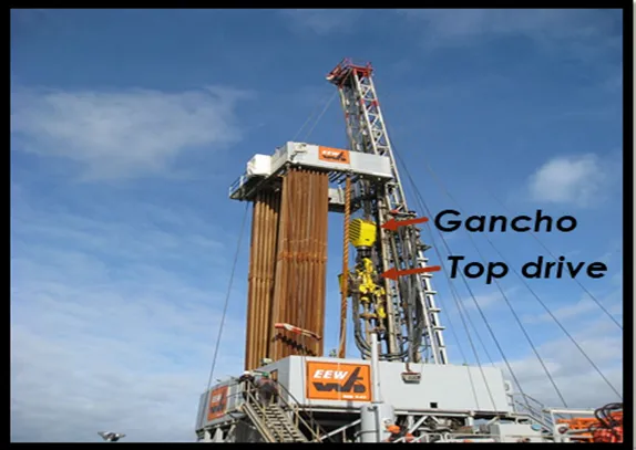 Conociendo el peso de la sarta de perforación, que a su vez es soportada por el gancho y el bloque viajero, nos permite que determinemos información importante cuando perforamos o corremos tubería. El peso de la sarta de tubería es todo el peso que soporta el gancho, y se obtiene multiplicando el peso nominal de la tubería en Libras/pie por la longitud total de la sarta de tubería. Un sensor colocado abrazando el cable de perforación que soporta el bloque viajero y el gancho mide este peso, lo que se conoce como carga o peso del gancho.