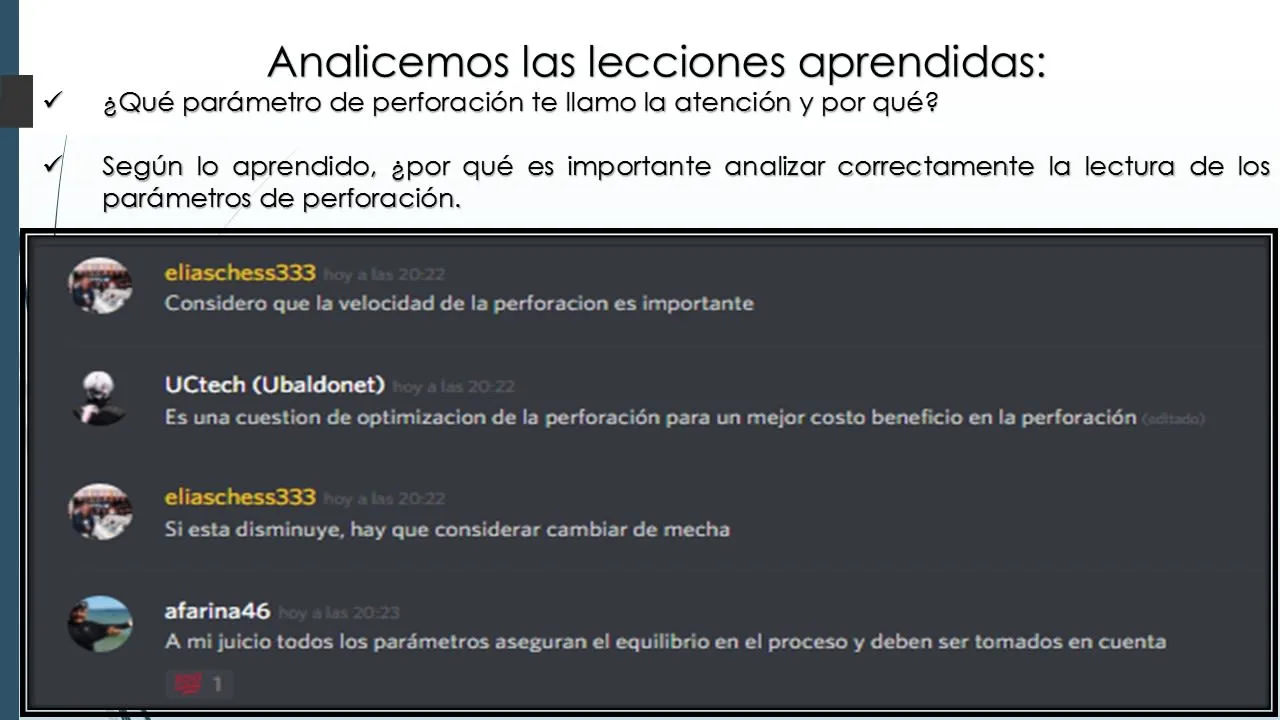 Ahora bien el propósito de presentar este artículo es realizar un resumen completo de los aspectos teóricos que involucran a los parámetros de perforación y explicar los aspectos más resaltantes tocados durante el conversatorio, y sobre todo dar respuesta a muchas de las preguntas e inquietudes desarrolladas durante la explicación de la temática tratada.