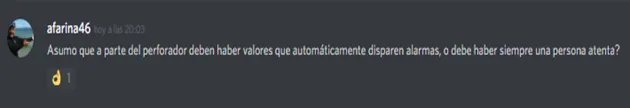 [10] ¿A parte del perforador, existe otro personal que pueda supervisar algunos de los parámetros de perforación, o quizás existan alarmas que disparen señales de alerta sobre alguna eventualidad anormal?