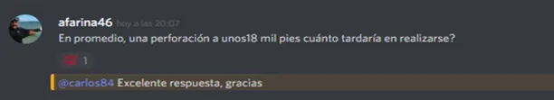 [11] ¿En promedio cuánto tarda en perforar un pozo de 18000 pies de profundidad?