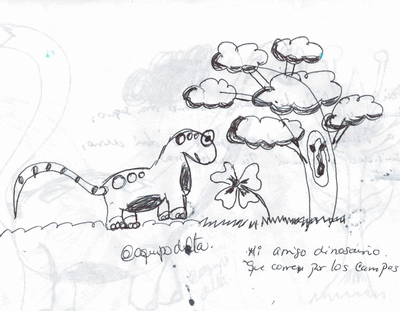 Dibujé un dinosaurio asexual, pero mi esposo le puso nombre femenino, le llamó Katrina y Katrina la llamaré.
