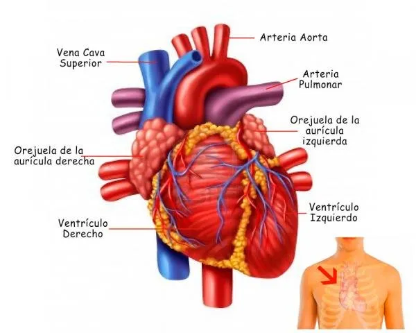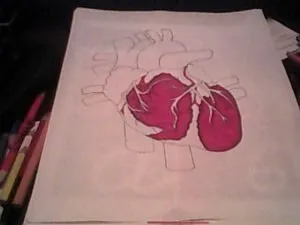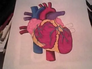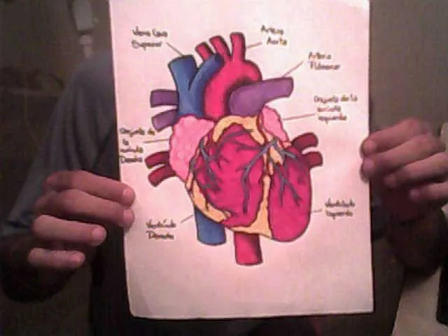 Debía ser del tamaño de una hoja, pintado a color con creyones. Como no tenía muy clara la estructura del corazón humano, busque en la web una imagen de referencia: