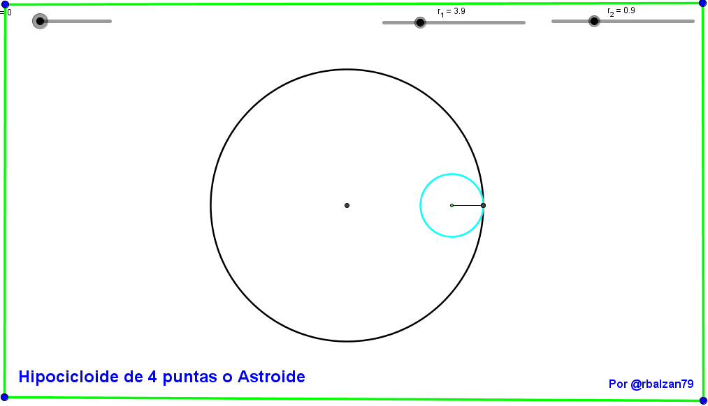 Seguimos ahora con nuestro segundo gif animado y la conformación de la hipocicloide llamada Astroide (por su parecido a una estrella) o de cuatro (4) puntas como podemos ver a continuación: