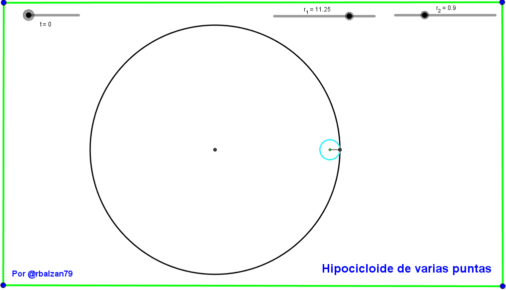 Ahora continuamos con otro tipo de curva hipocicloidal aquellas con varias puntas debido a su mayor grado de complejidad en cuanto a la proporción o razón entre los radios de las circunferencias involucradas como podemos observar a continuación en el siguiente gif animado: