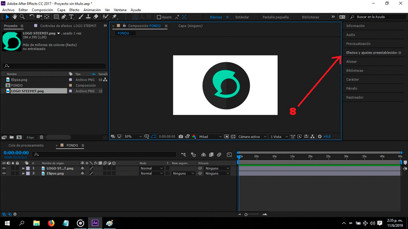 Seleccionamos las 2 partes de nuestro logo, presionamos clic derecho y las precomponemos.