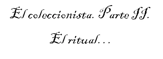 Mientras tanto, cuatros adonis esperan resignados a su fatídico final, en aquella húmeda mazmorra, el patio de diversión, cuyo ritual embriaga todo, con mi oscura colección…