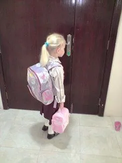 Jaime's first day of school in Bahrain.