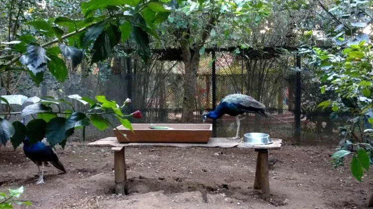But, that was the sad part I was talking about. Even though they had enough space, they could only move inside that limited area, with a sight of sky and the world around them through the small squares of the net. The peacock that walked with us when it stopped and looked at us, we felt like it is begging to take himself to the wild.