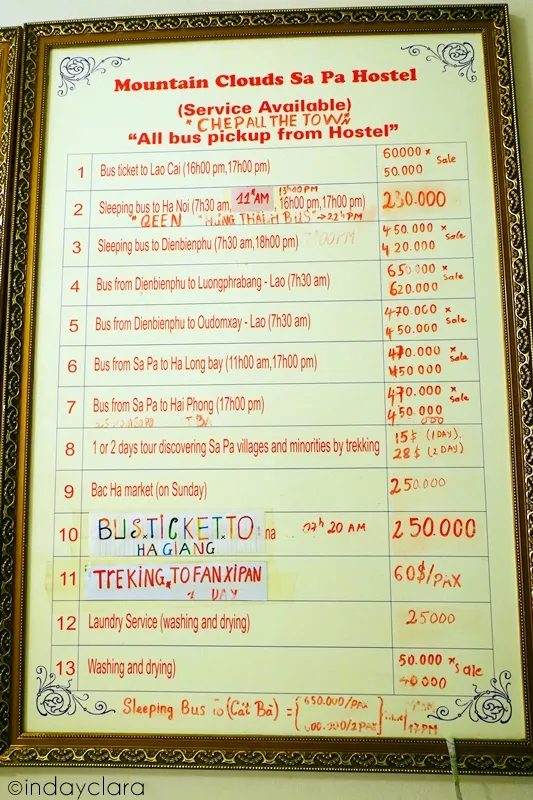 I bought the ticket from the hostel (Mountains Cloud Sa Pa Hostel) where I was staying. The cheapest one you could find in the area. One night is 5.00 USD. I paid 420,000 VND for the bus ticket.