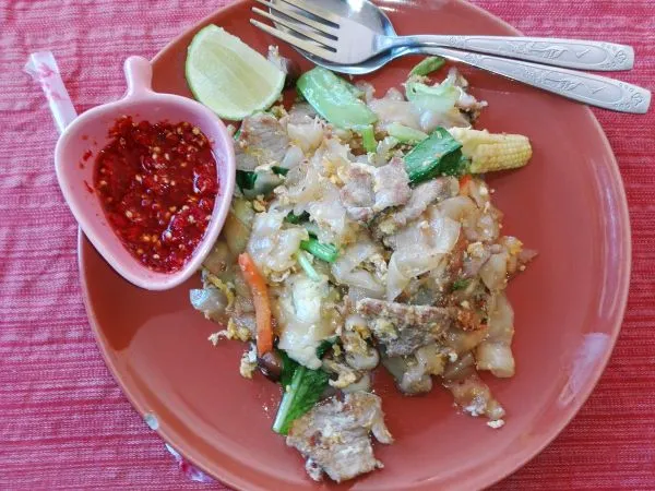 Pat Si Ew Chicken. A Stir Fried Wide Noodle Dish from Pen's Kitchen in Pai