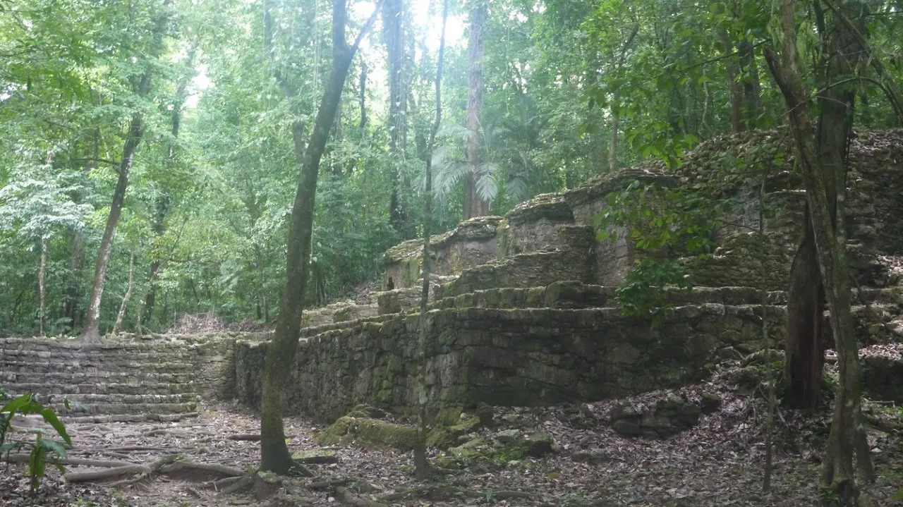 We then walked towards the Palenque museum, through a seemingly unspoilt part of the ancient city whose ruins were entirely covered in trees, looking from afar like some long-forgotten burial mounds. These tumuli-shaped remnants of the city seemed separate from the centre of the site, entirely outgrown by forest, a small river winding between the buildings, providing water for the numerous species who had taken over Palenque.