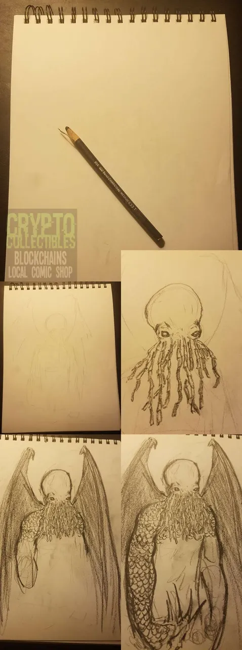 A second entry for @kommienezuspadt's Trial by Comics with the theme being Lovecraft. So if you seen the first entry here, it was inspired by H.P. Lovecraft's original drawing of Cthulhu. The inspiration for this drawing came about randomly while watching the movie Bird Box. Without spoiling the movie, I will say there was a scene where drawings are laid out and one of them reminded me of Cthulhu. Here is a frame of that scene and again, really no spoilers in this still image: