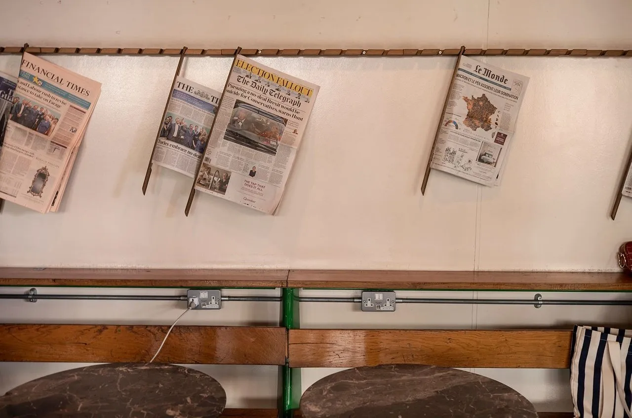런던 신문들이 걸려있습니다. 역시 텍스트는 종이로 읽어야 제맛이죠.