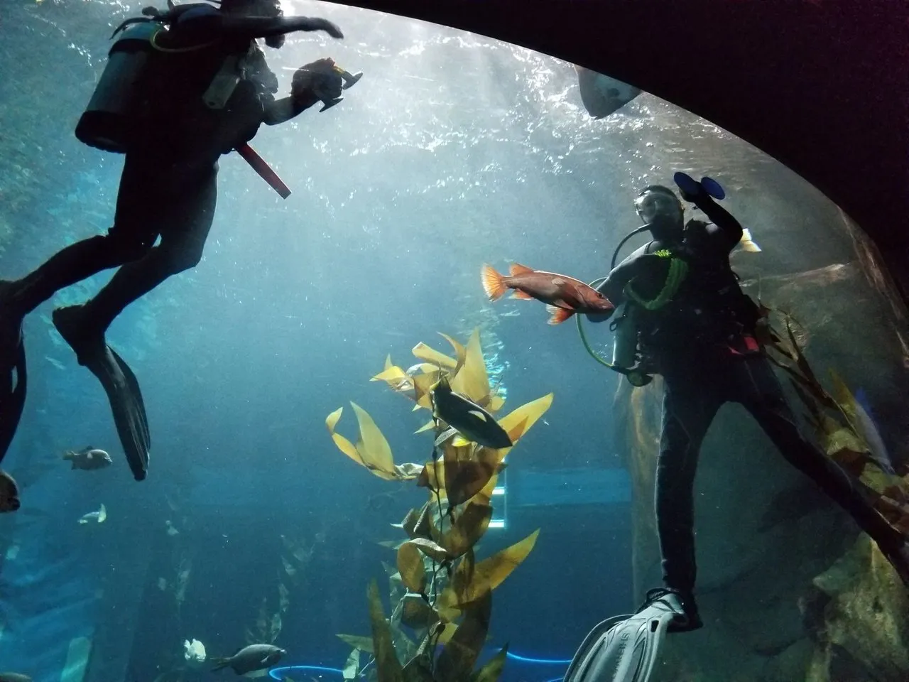 잠수부 분들이 유리창 청소를 하고 계셨어요 ㅎㅎ