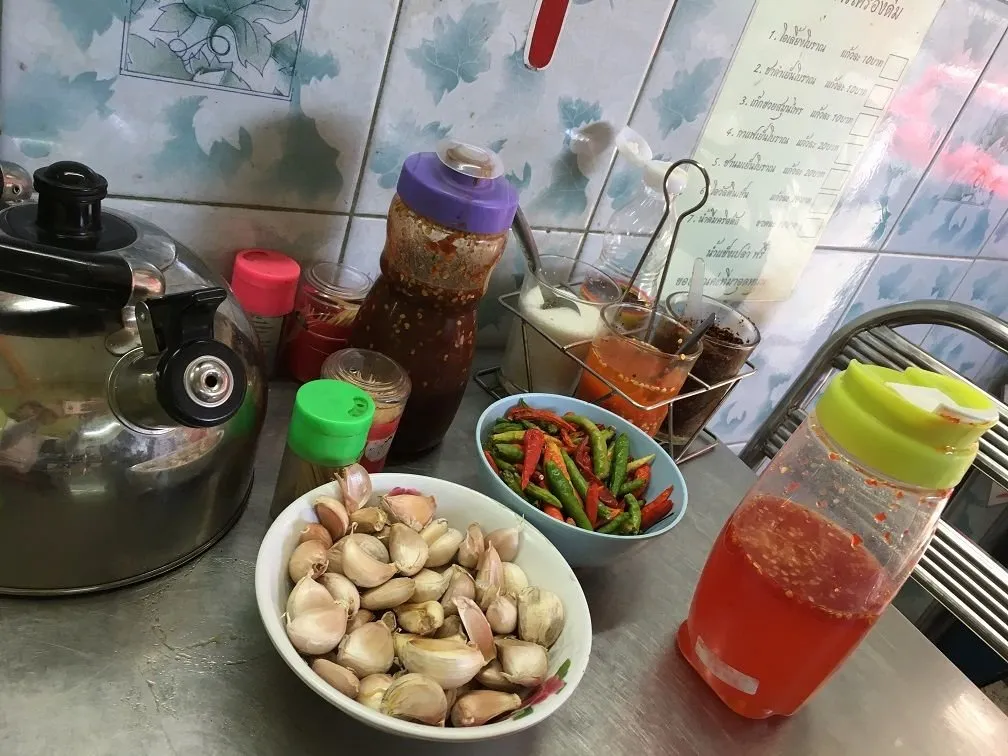 - 음식을 주문하고 내부를 봅니다. 테이블위의 양념들은 모두 필요한 것들이지요.