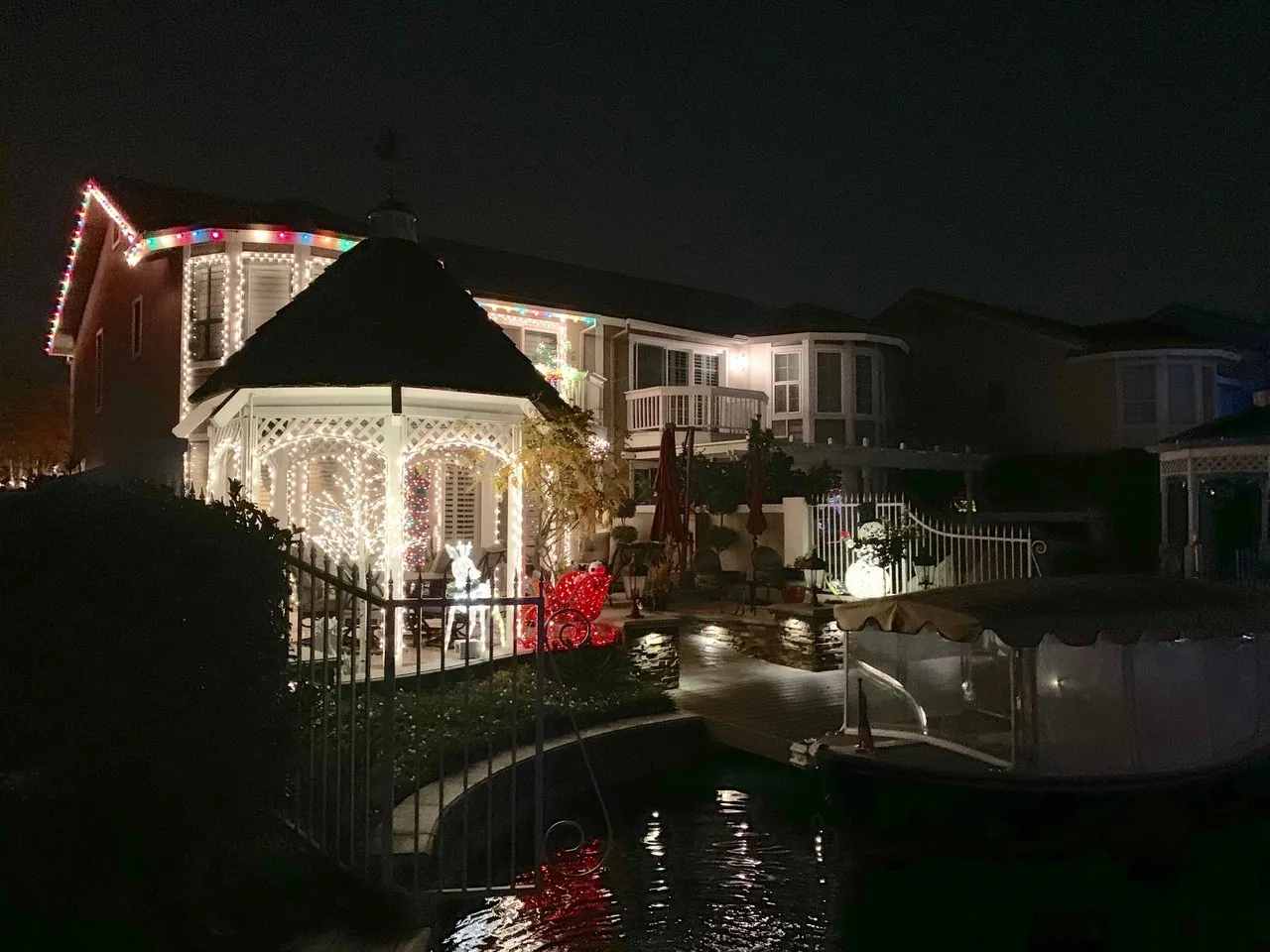 산타모니카 비치 근방에 있는 베니스비치옆 운하가 있는데 그곳에도 저렇게 집들이 지어져 있답니다. 그곳과 느낌이 비슷한데 그건 낮에 봐도 멋있다는 겁니다. 차이점이 있다면 베니스비치는 곤돌라같은게 운행되고 저기는 보트가 운행된다는 겁니다. 집마다 보트도 있는데 East Lake Village Office 에서 보트 투어하는 프로그램이 있다고 합나다. 단 늦은시간까진 안한다네요.