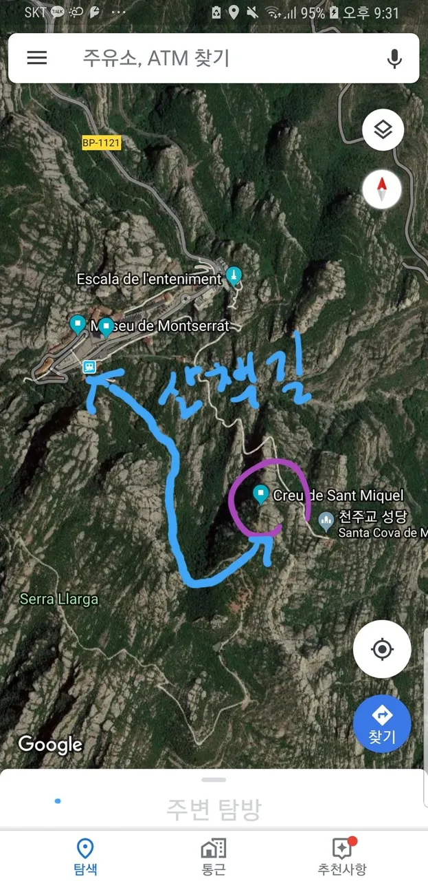 사그라다 파밀리아 성당 설계자인 가우디가 이 산을 얼마나 사랑했을지 그 기운이 느껴졌습니다. 몬테라트 수도원에 가시면 꼭 이 십자가에 다녀오시기 바랍니다. 전혀 힘들지 않습니다. 실내화로도 다녀올 수 있을만큼 산책로가 잘 꾸며져 있습니다.
