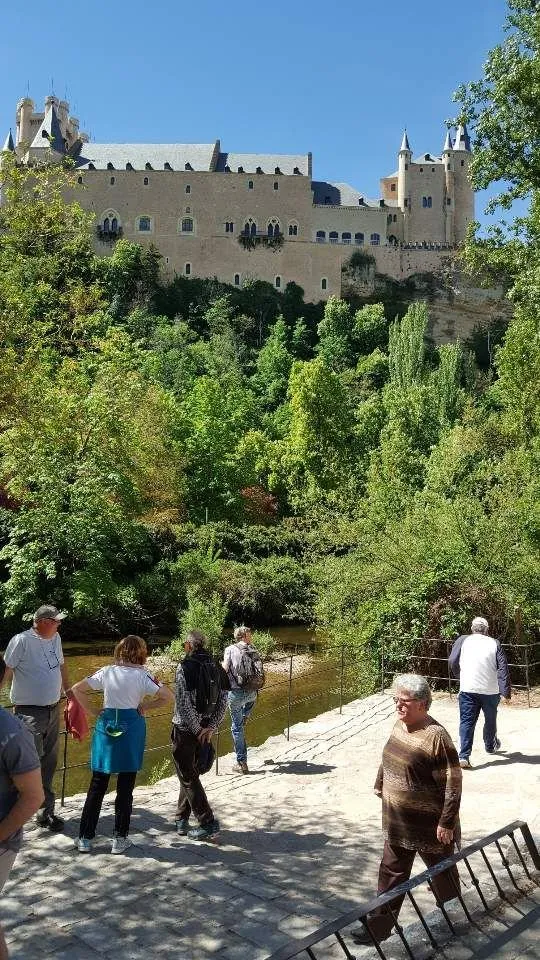 세고비아 북서쪽 외곽의 둘레길에서, 백설공주의 성 알카사르가 보인다. 가운데 배낭 매고 다리를 걸친 아재는 지금 낙시하고 있다.